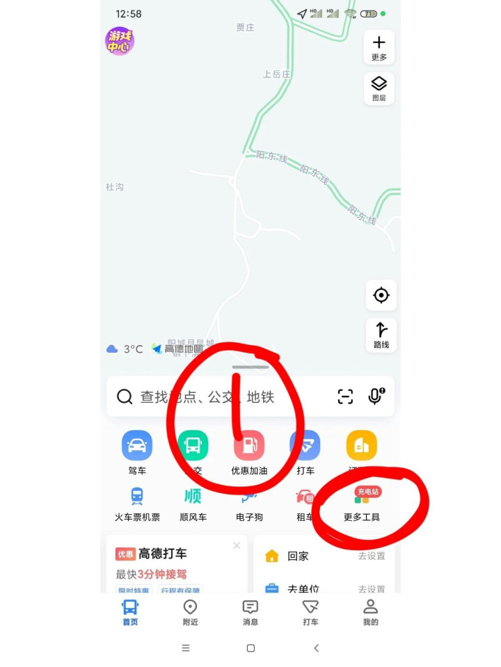 打开高德地图(若未安装,各大应用商店搜索即可免费下载),首页右下角点“更多工具”。