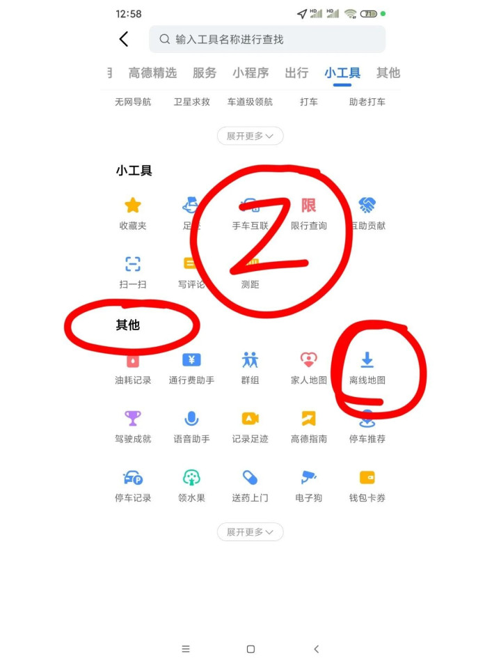 页面滑到最底部“其他”分类,找到蓝色图标的“离线地图”。