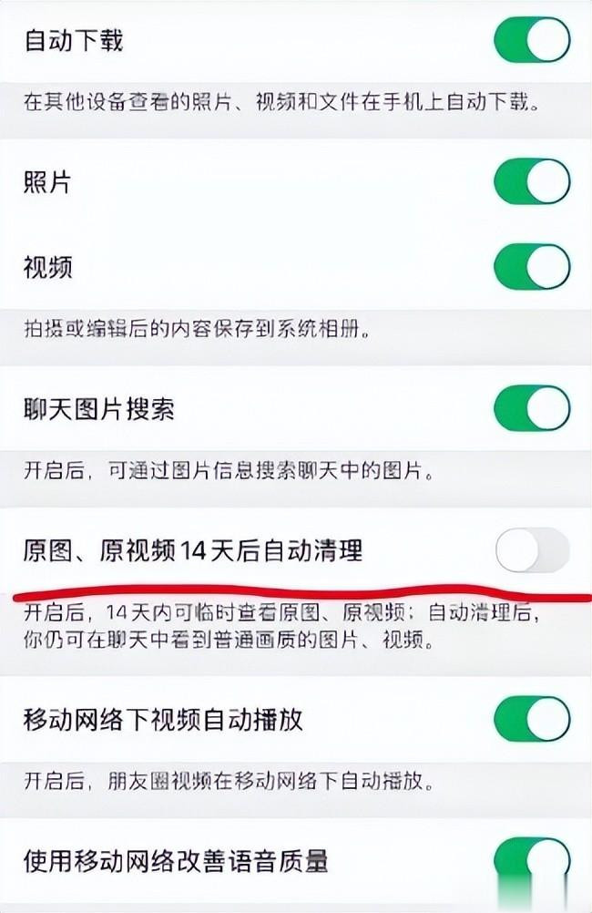 打开微信,点 “我”,再点 “设置”;点 “通用”,找到 “照片、视频、文件和通话”;把 “自动下载照片”“自动下载视频” 的开关关掉,再把 “移动网络下视频自动播放” 也关掉。