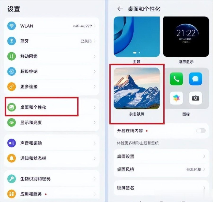 解锁手机,点开 “设置”;往下滑,找到 “桌面和壁纸”“桌面个个性化”(不同品牌名字不同),点进去;右上角有 “杂志锁屏”,点开后,把 “每次亮屏显示不同锁屏图片” 的开关关掉。这样既不耗流量,又能少占内存,手机轻装上阵。